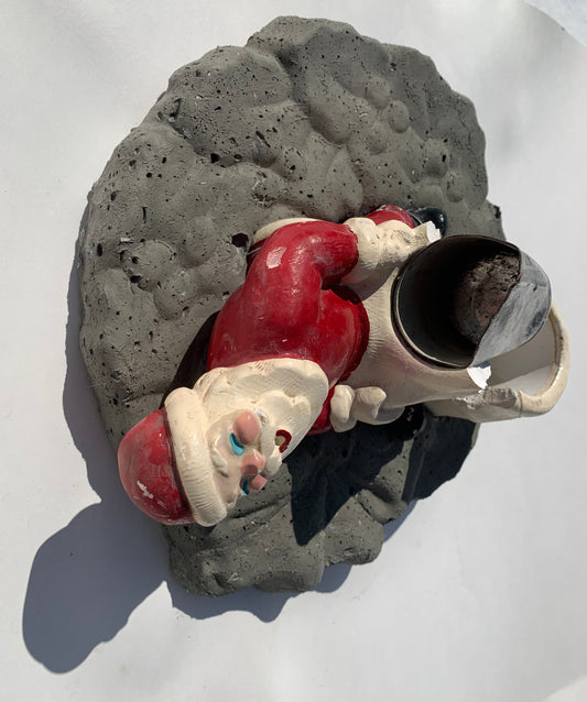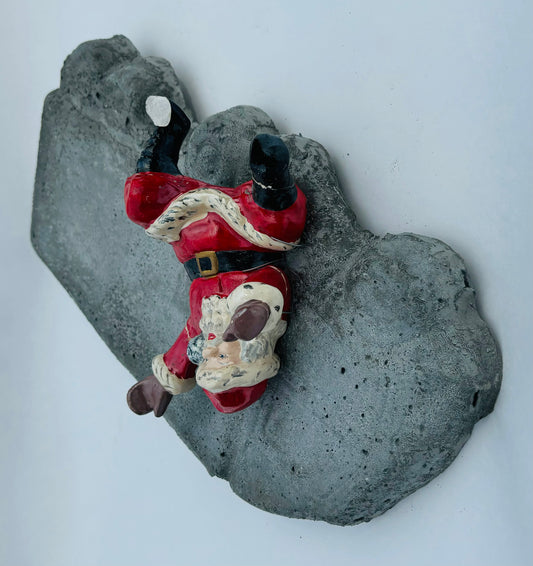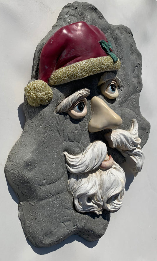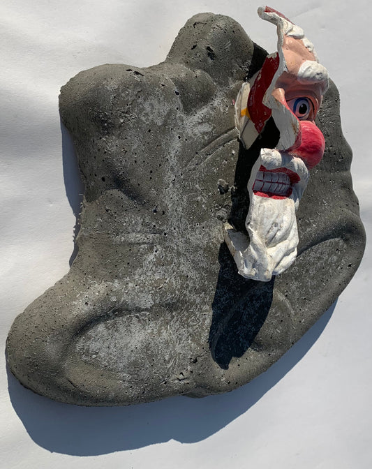 "Seasonal Discombobulation": Club-fisted Santa on Listing Santa Wall Sculpture