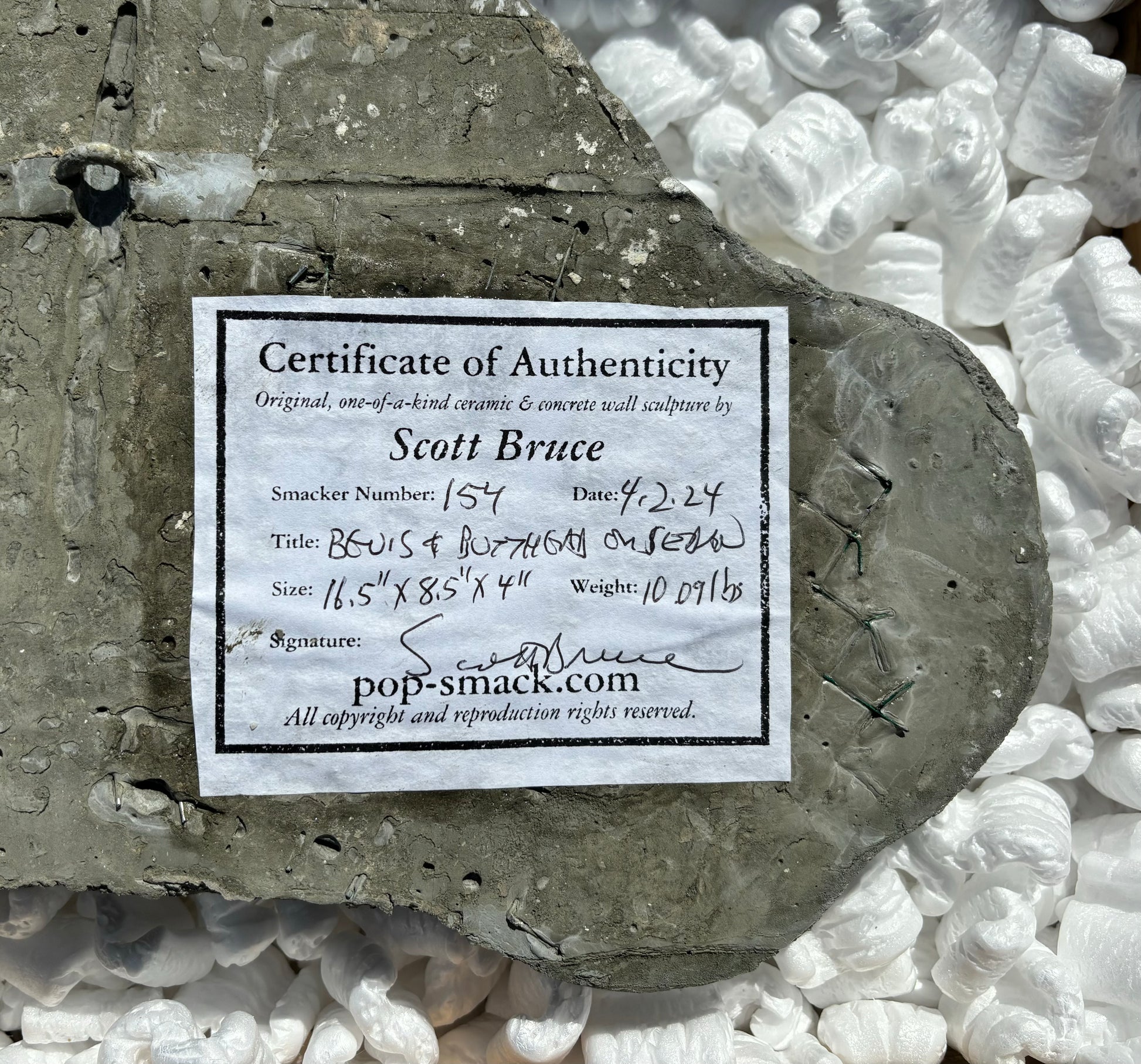 Get Smacked by this Bevis and Butt-Head on Car in this unique Alt Toons Smacker Wall Sculpture entitled "MAGA Men." Crafted with mixed media by artist Scott Bruce.