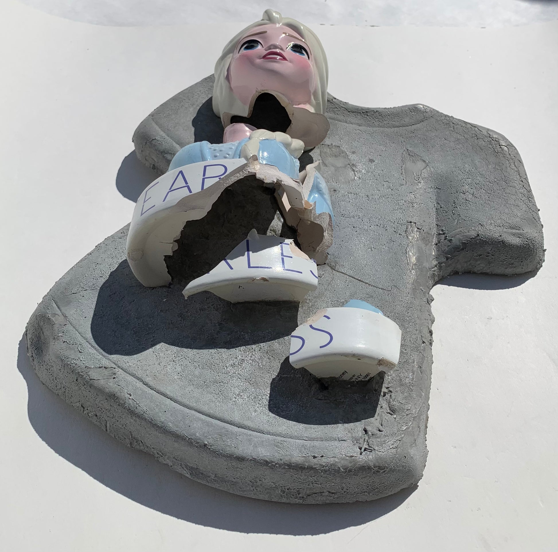 Get Smacked by this Frozen's Elsa on T-Shirt one-off Disney Smacker Wall Sculpture entitled "Belladonna Babe." Handcrafted in mixed media by artist Scott Bruce.
