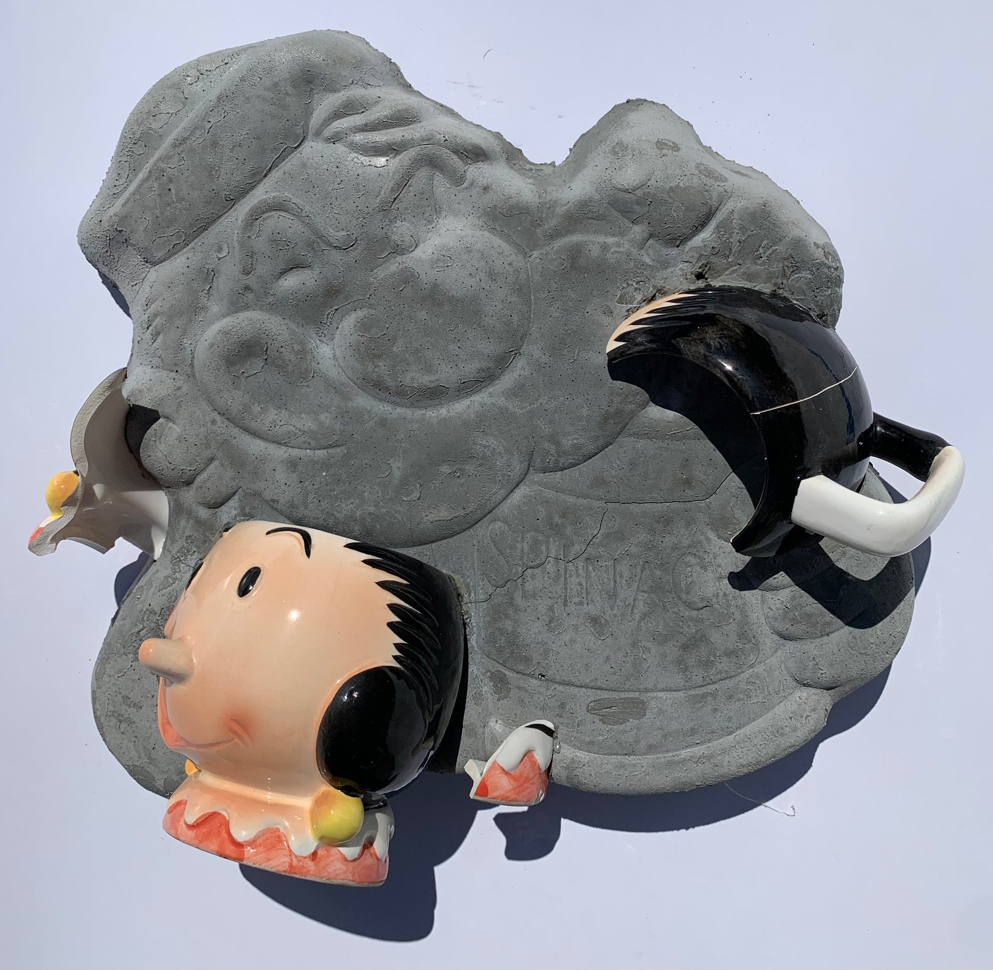 Get Smacked by this Olive Oyl on Popeye the Sailor Man one-off Alt Toons Smacker Wall Sculpture entitled "Sometime Sweethearts." Handcrafted in mixed media by artist Scott Bruce.