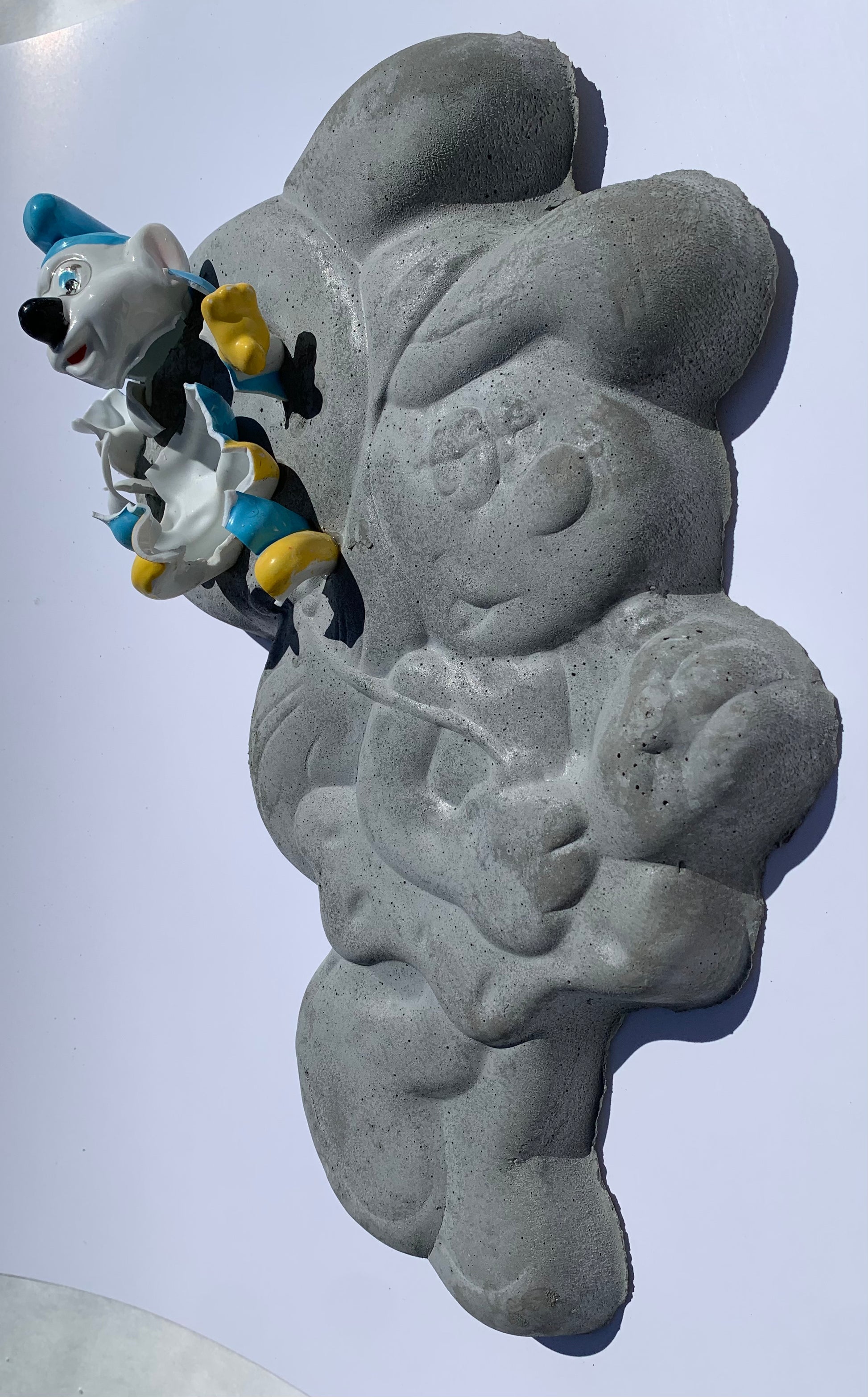 Smurf on Smurfette one-off Alt Toons Smacker Wall Sculpture entitled "Odd Couple!" Handcrafted in mixed media by artist Scott Bruce.