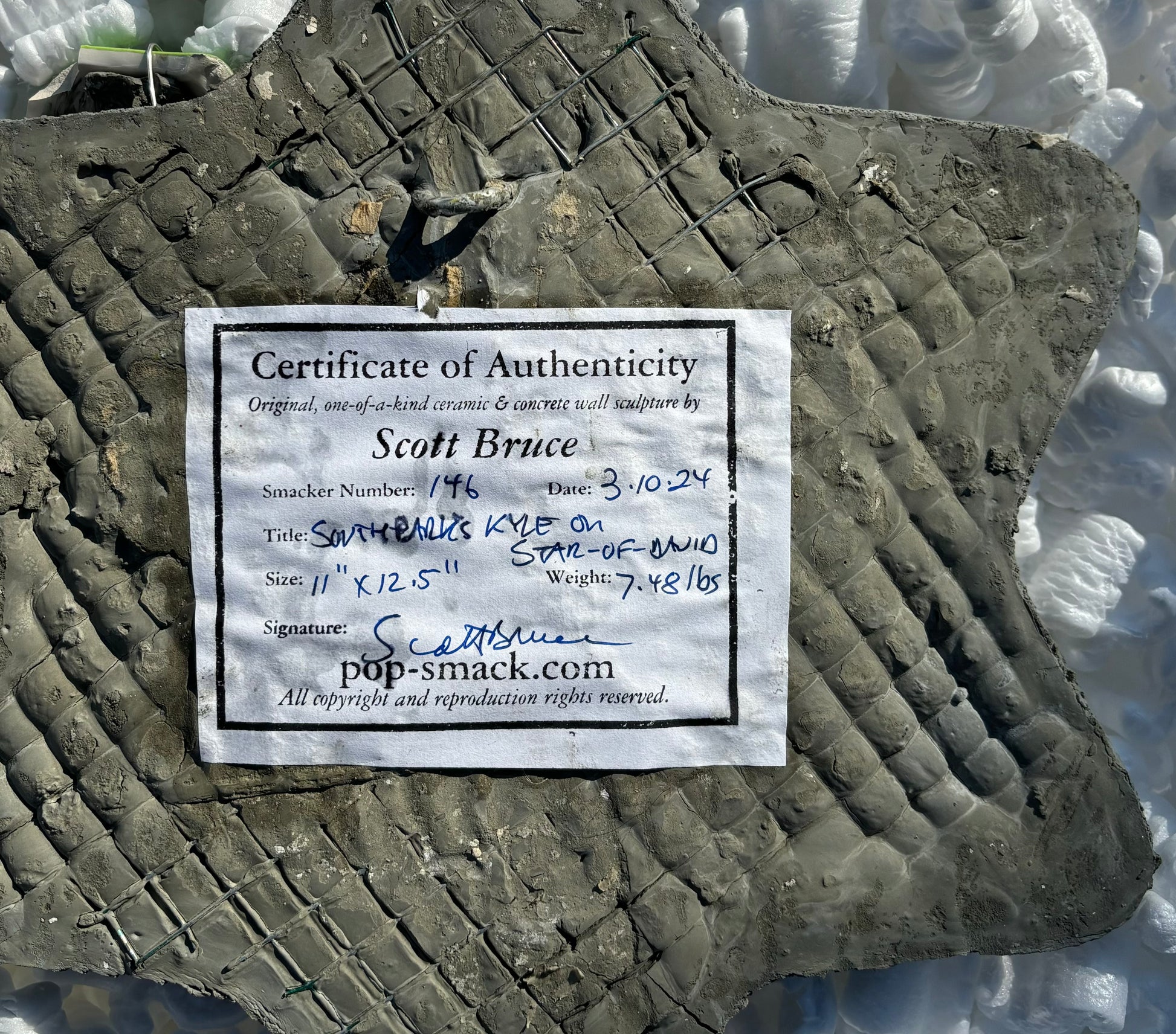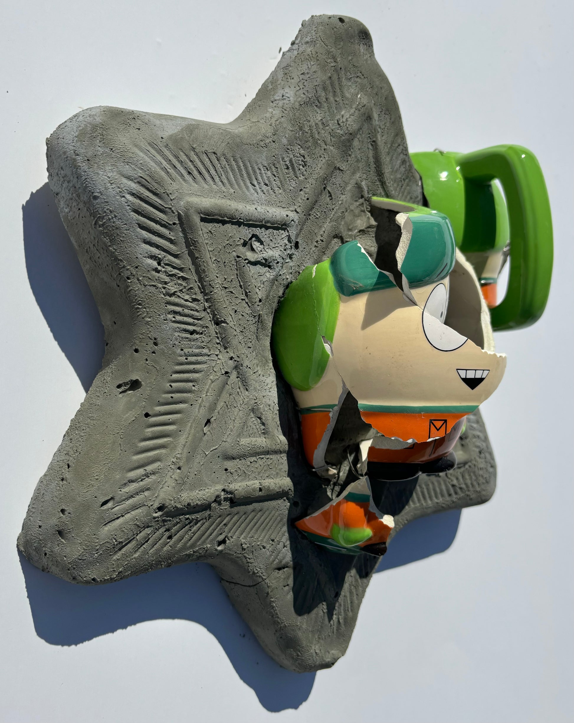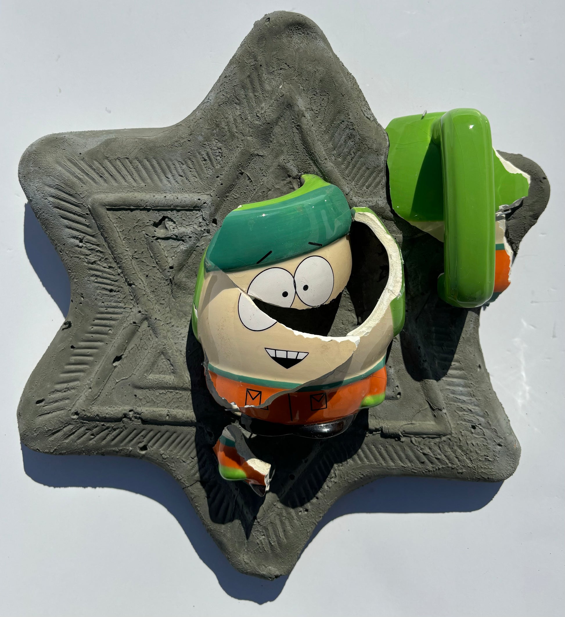 Get Smacked by this South Park's Kyle on Star-of-David one-off Alt Toons ceramic & concrete Smacker Wall Sculpture entitled "Brightest Bulb!" Handcrafted in mixed media by artist Scott Bruce.